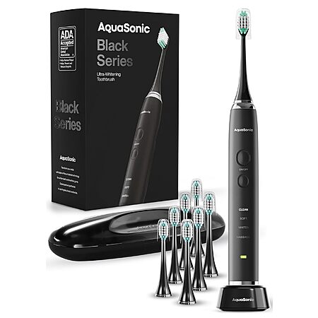 Aquasonic Black Series Ultra Whitening Toothbrush – ADA Accepted Electric Toothbrush- 8 Brush Heads & Travel Case – $29.95, Amazon