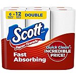 Scott Paper Towels, Choose-A-Sheet, 6 Double Rolls = 12 Regular Rolls (108 Sheets Per Roll)~$6.50 With S&S @ Amazon