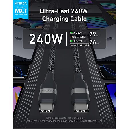 $19.99: Anker Nano USB C Cable, 240W Flexible Multi-Color Braided Cord, Fast Charging Type C Charger for iPhone 17 Series, MacBook Pro and More (Black, 10ft)