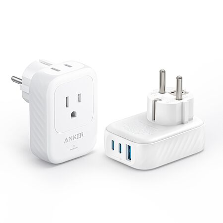 AnkerDirect via Amazon[amazon.com] has 2-Pack 15W Anker 5-in-1 US to Europe International Travel Plug Adapter w/ 2 x AC, 2 x USB-C and 1 x USB-A Port (Type E/F - Europe, TUV Listed) on sale for $14.99. Shipping is free w /Prime or $35+ orders.