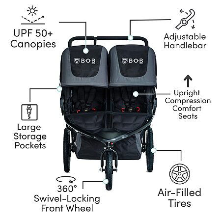 BOB Gear Revolution Flex 3.0 Duallie Jogging Stroller, Double Stroller, Graphite Black $719.99