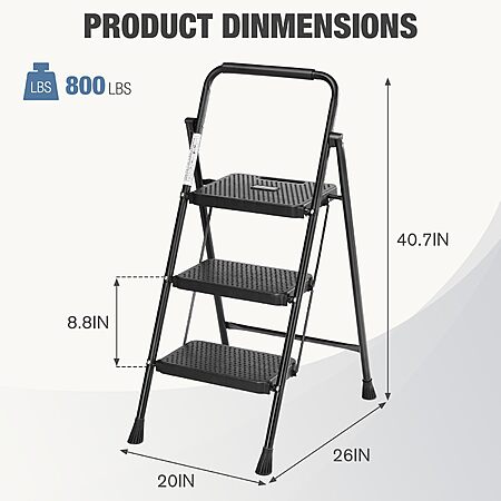 Sweetcrispy 3 Step Ladder Folding Step Stool (800lbs Sturdy) $27.98 + Free Shipping w/ Prime or on $35+