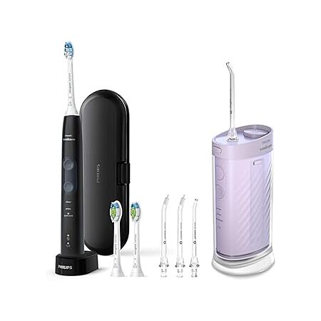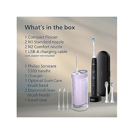 Philips Sonicare Compact Flosser 1000, Purple, ProtectiveClean 5300 Rechargeable Electric Toothbrush and 2PK Compact Nozzle Bundle - $104.99 + free ship w/ Prime