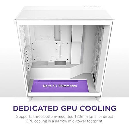 Model: NZXT H7 Flow RGB | Mid-Tower ATX Airflow Case with 360mm RGB Single Frame Fan | Supports Bottom Fans for Direct GPU Cooling | Cable Management | White