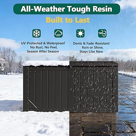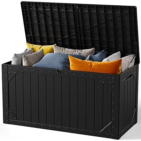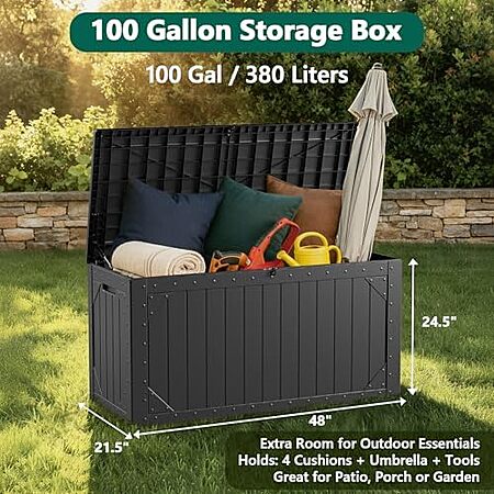 Model: MAKE CHANGES 100 Gallon Outdoor Storage Box, Waterproof Resin Deck Box Organizer for Patio Cushion Storage, Lockable Outside Container for Garden Tools