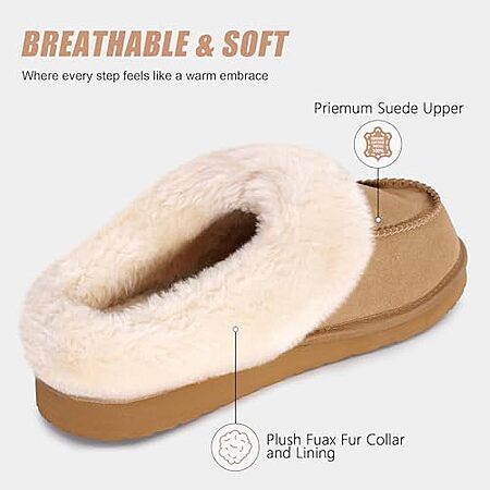$9.99* | FITORY Women's Faux Fur Lined Suede Slippers (Brown Suede) at Amazon