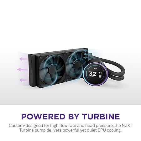 - SUPERIOR COOLING: The custom-designed NZXT Turbine pump efficiently cools even the most heat-prone CPUs with its high flow rate and head pressure, resulting in a 10%* performance boost with less noise.