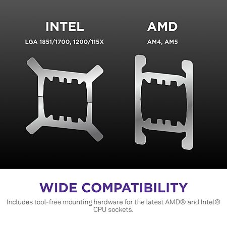 - SIMPLE INSTALLATION: Get set up quickly with pre-applied thermal paste, a single breakout cable, and tool-free mounting brackets for the latest AMD (AM5, AM4) and Intel (LGA 1851/1700, 1200/115X) CPU sockets.