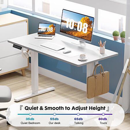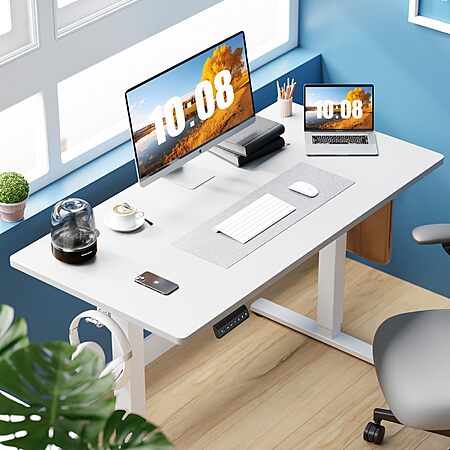 Amazon.com has Sweetcrispy Electric Standing Desk Adjustable Height, 40x24 Inch Sit Stand Up Home Office Desks Computer Workstation PC Work Table with 3 Memory Preset Splice Wood Board Metal Frame, White on sale for $63.97. Shipping is Free.