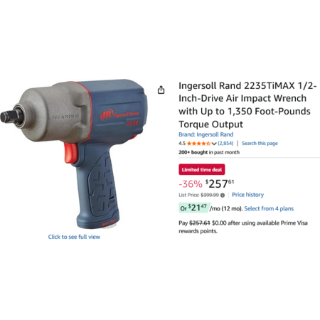 Model: Ingersoll Rand 2235TiMAX 1/2-Inch-Drive Air Impact Wrench with Up to 1,350 Foot-Pounds Torque Output