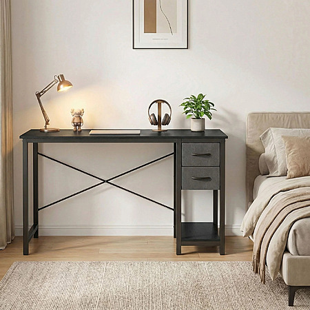 【Ample Storage】This desk features two spacious fabric-lined drawers, an adjustable shelf, and a hook, providing generous storage for documents, office supplies, electronics, and more. Keep everything organized and within easy reach.