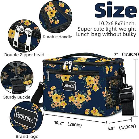 8-Liter Beimily Polyester Insulated Lunch Box w/ Adjustable Shoulder Strap (Floral Yellow) $6.49 + Free Shipping w/ Prime or on $35+