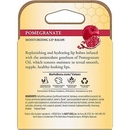 4-Count 0.15 oz. Burt's Bees 100% Natural Moisturizing Lip Balm, Pomegranate $5.69 w/ S&S + Free Shipping w/ Prime or on $35+