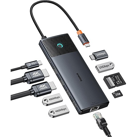 Baseus Official Store via Amazon[amazon.com] has Baseus 10-in-1 Docking Station w/ 2x HDMI Single 4K@120Hz, Dual 4K@60Hz, 10Gbps USB-C & USB-A, Ethernet, PD 100W on sale for $69.99 - $24 off w/ code AP946SOJ at checkout = $45.99. Shipping is free.