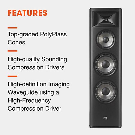 JBL Studio 698 towers, true 3-way with Compression Driver tweeter, 6" midrange woofer & dual 8” Woofers $749 each at IQ Home Entertainment via Amazon