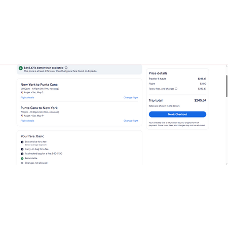 Round Trip New Jersey to Punta Cana Dominican Republic $246 Nonstop Airfares on Arajet BE (Limited Travel April - June 2026)