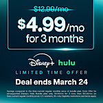 3-Months Disney+ w/ Hulu Bundle w/ Ads Streaming Subscription