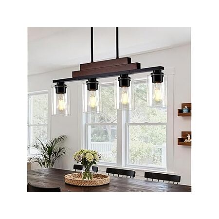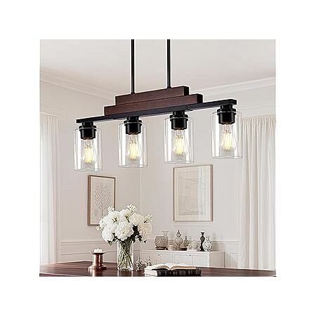 4-Light Linear Chandelier Pendant Wood Ceiling Light Fixture Hanging w/ Clear Glass Shade (Matte Black) $39.99 + Free Shipping w/ Prime