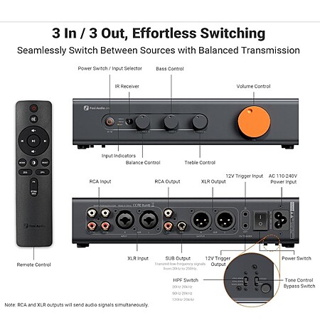 Fosi ZP3 pre-amp with XLR/RCA and subwoofer outputs with High Pass Filter, perfect for ACTIVE speakers $161.31