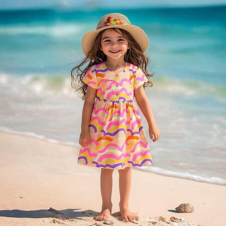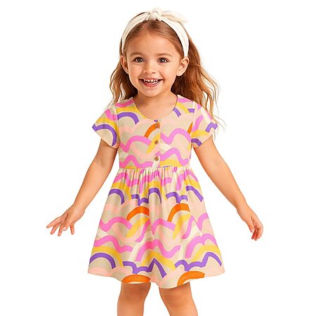 HILEELANG Short Sleeve Dress Spring Summer 100% Cotton Size 2T- 7 year old $8.99