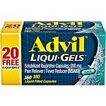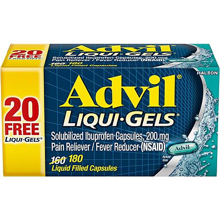 One package of 180 Advil Liqui-Gels Pain Reliever and Fever Reducer Liquid Filled Capsules, Pain Medicine for Adults with Ibuprofen 200mg for Headache, Backache, Menstrual Pain and Joint Pain Relief
