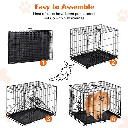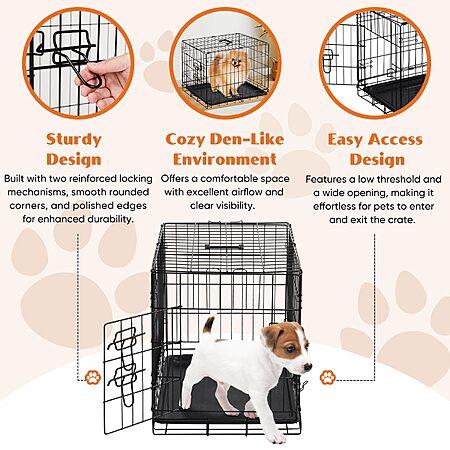 Hey, I just saw this Sweetcrispy 30 Inch Single Door Dog Crate on Amazon for $23.97. It's a foldable metal crate with a secure latch and removable tray, so it's a simple option for training or traveling with a small dog.
