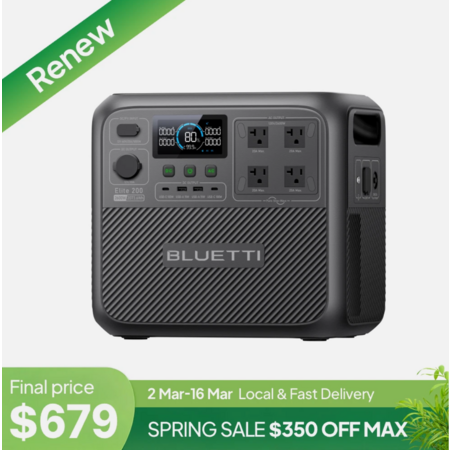 Refurbished BLUETTI Elite 200 V2 2600W 2073Wh Portable Power Station for RV Trip/Home Backup $679