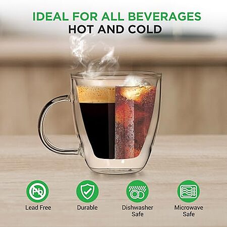 Model: NutriChef 5.2oz Clear Glass Coffee Mug Set - NGCOF702 - 2-Piece Hand-Blown Thermal Shock Resistant Glasses