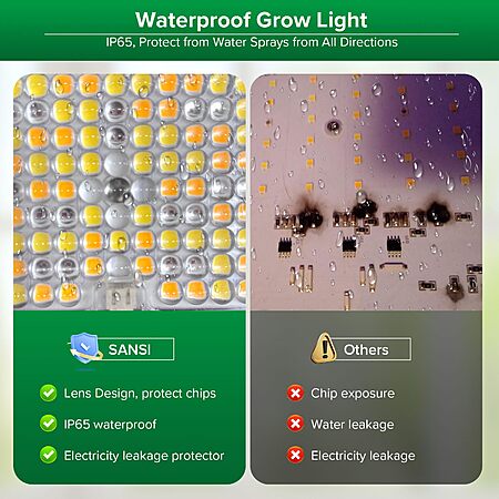 - IP65 Waterproof: The 45W grow light is IP65 waterproof, suitable for both indoor and outdoor plants. No need to worry about water splashes.