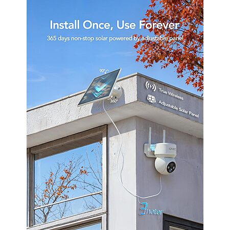 GNCC Solar Security Cameras Wireless Outdoor 2.4G WiFi, 360° View, Solar/Battery Powered, AI Human Detection, Color Night Vision, 2-Way Audio $24.99