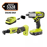RYOBI ONE+ 18V 1/2" Impact Wrench + 3/8" 4-Position Ratchet w/ 2Ah Battery & Charger