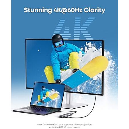 • Features an HDMI port, two USB-A 3.0 ports, and a USB-C data port, each providing 5Gbps transfer speeds