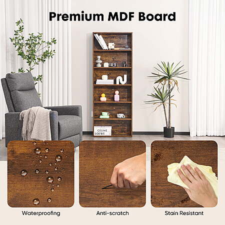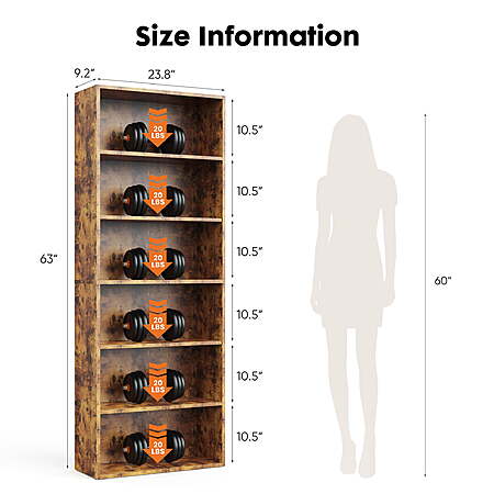Adjustable Shelves: Customize your storage space with the adjustable 5/6-tier bookshelf, measuring 9.2"D x 23.8"L x 53"H/63"H.