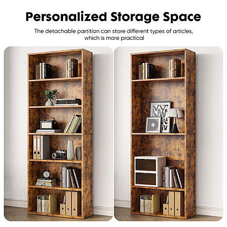 Model: ZUNMOS 6 Shelf Bookcase, 63 Inch Tall Open Industrial Standing Bookshelf Large Storage for Home Office, Living Room, Bed Room, Rust