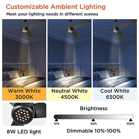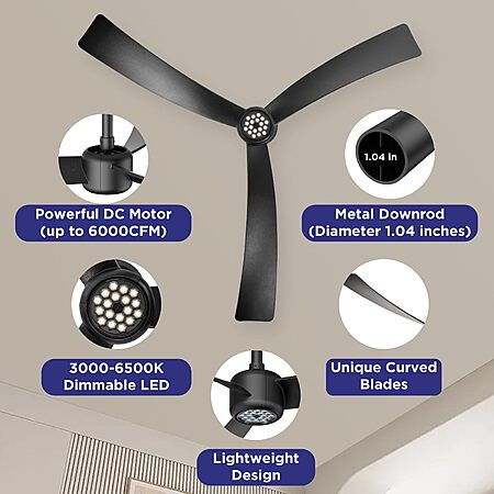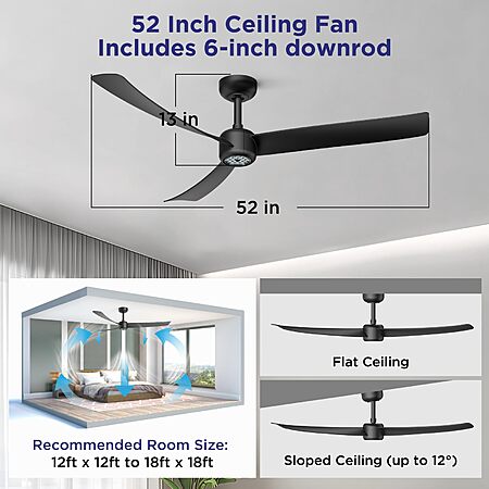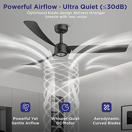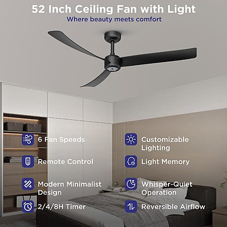 ocioc 52" 3-Blade Ceiling Fans with Lights and Remote, Quiet Reversible DC Motor, 6 Speeds $53.98