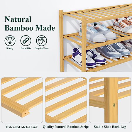 [Prime] Prime Members: 3-Tier Smiry 27" Thick Bamboo Stackable Shoe Rack Organizer $12.59 + Free Shipping