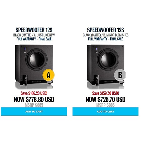 RSL Speedwoofer 12S subwoofer in "Like New" condition $778, "Minor blemishes" $726 in Encore store! $725.7