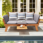 Katinka Eucalyptus Outdoor Daybed Sofa with Folding Armrest & Coffee Tray with 3 Pillows $146.99