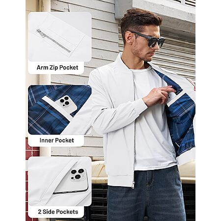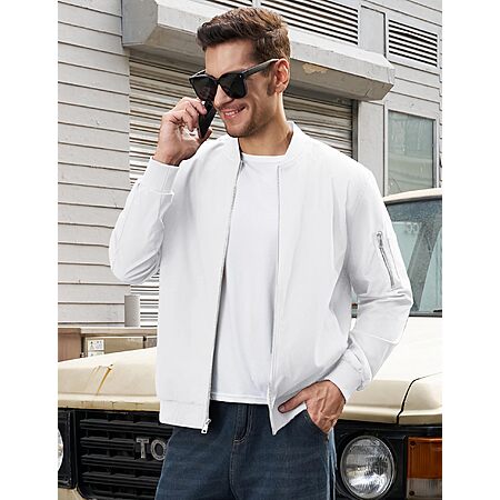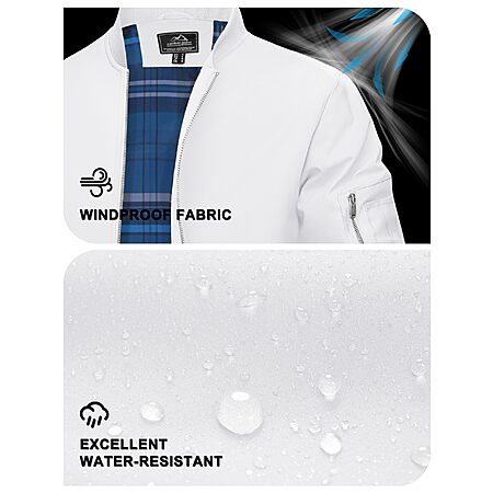 - Feature: Mens Lightweight jacket comes with ribbed collar, hem and cuffs, full zip, long sleeves for a windprood and comfortable fit.