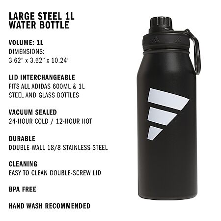 34-Oz adidas Stainless Steel Metal Water Bottle (1L) Screw Cap (Black/White) $17 + Free Shipping w/ Prime or on $35+