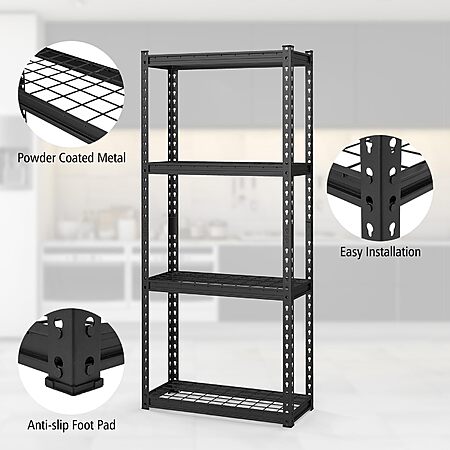 GoplusUS via Amazon.com has Goplus 4-Tier Metal Shelving Unit, 2 Pack Heavy Duty Wire Storage Rack with Anti-Slip Foot Pads, Height Adjustable Shelves for Warehouse, Kitchen, Living Room, Garage, 12" D x 27.5" W x 60" H on sale for $54.99. Shipping is Free.