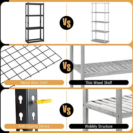- Sturdy & Secure Structure: Say goodbye to wobbly structures and thin wood shelf. Our standing shelf unit provides a stable structure with a large load capacity of 880 lbs. Moreover, incorporating metal wire shelves, anti-slip foot pads and anti-tipping devices, this heavy duty wire shelving unit guarantees the safety and security of your items.