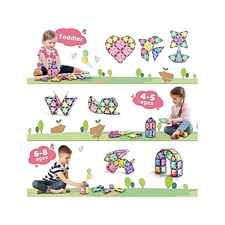 - Learn Through Play: Introduce STEM learning early! These magnetic tiles help with visual learning, color recognition, fine motor skills, geometric shapes, magnetic polarity, and basic math. Perfect for engaging kids in educational activities.