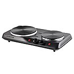 1700W Ovente Electric Countertop Double Burner w/ Cast Iron Hot Plates (Black, BGS102B) on sale for