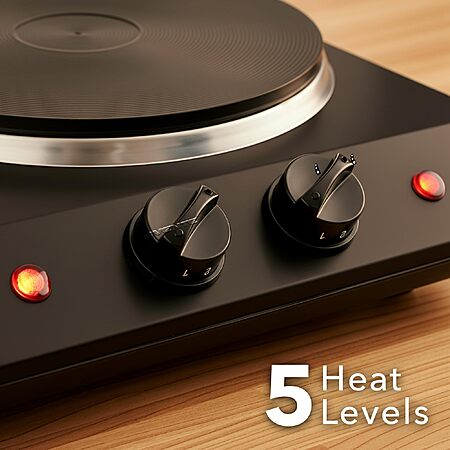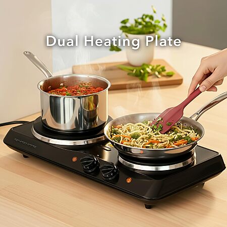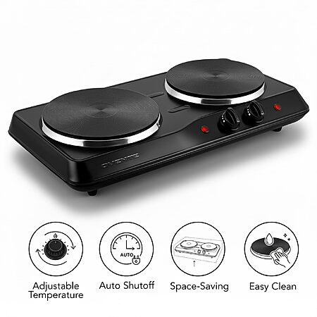 OVENTE Electric Countertop Double Burner, 1700W Cooktop with 7.25" and 6.10" Cast Iron Hot Plates, Black BGS102B - $19.19