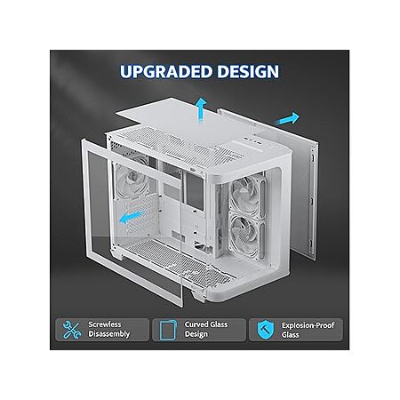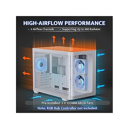 - [Innovative Curved Glass Views] The curved design offers a sleek, modern aesthetic that stands out in any setup. The R angle transition is natural and elegant, experience the awe-inspiring 270ยฐ panoramic tempered glass panel on this computer case. Note: ๐๐๐ ๐๐ฎ๐ ๐๐จ๐ง๐ญ๐ซ๐จ๐ฅ๐ฅ๐๐ซ ๐ง๐จ๐ญ ๐ข๐ง๐๐ฅ๐ฎ๐๐๐.