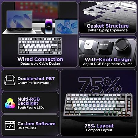 $32.99* | YUNZII B75 Hot Swappable RGB Backlit Gasket Mount Mechanical Keyboard (Dark Grey) at Amazon