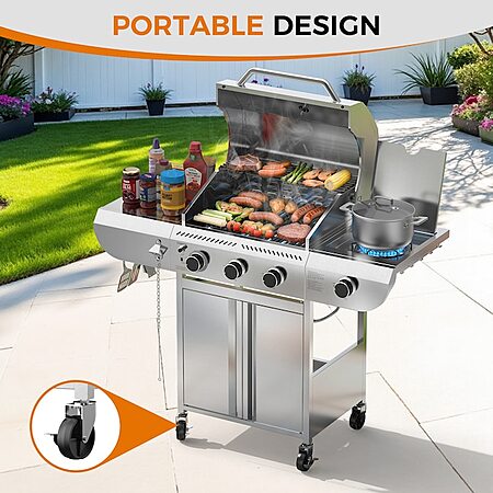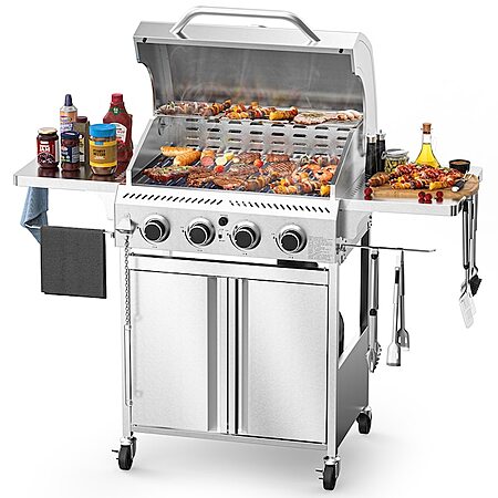 3-Burner COWSAR Liquid Propane Gas Grill w/ Side Burner (Stainless Steel and Silver) $260 & More + Free Shipping