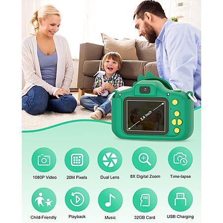 Hangrui Kids Digital Toy Dinosaur Camera + 32GB SD Card (Green or Purple) on sale for $19.99 - 50% with promo code
