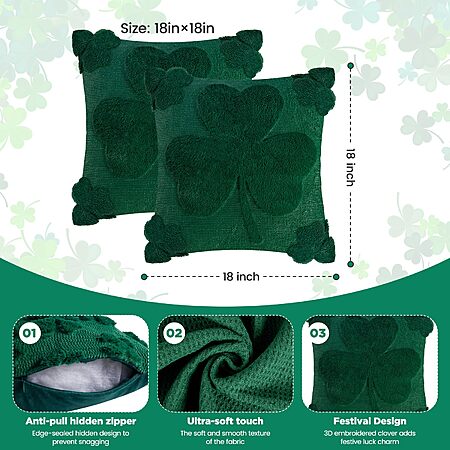 2PCS 18x18 Inches St Patrick's Day Shamrock Pillow Covers $9.99